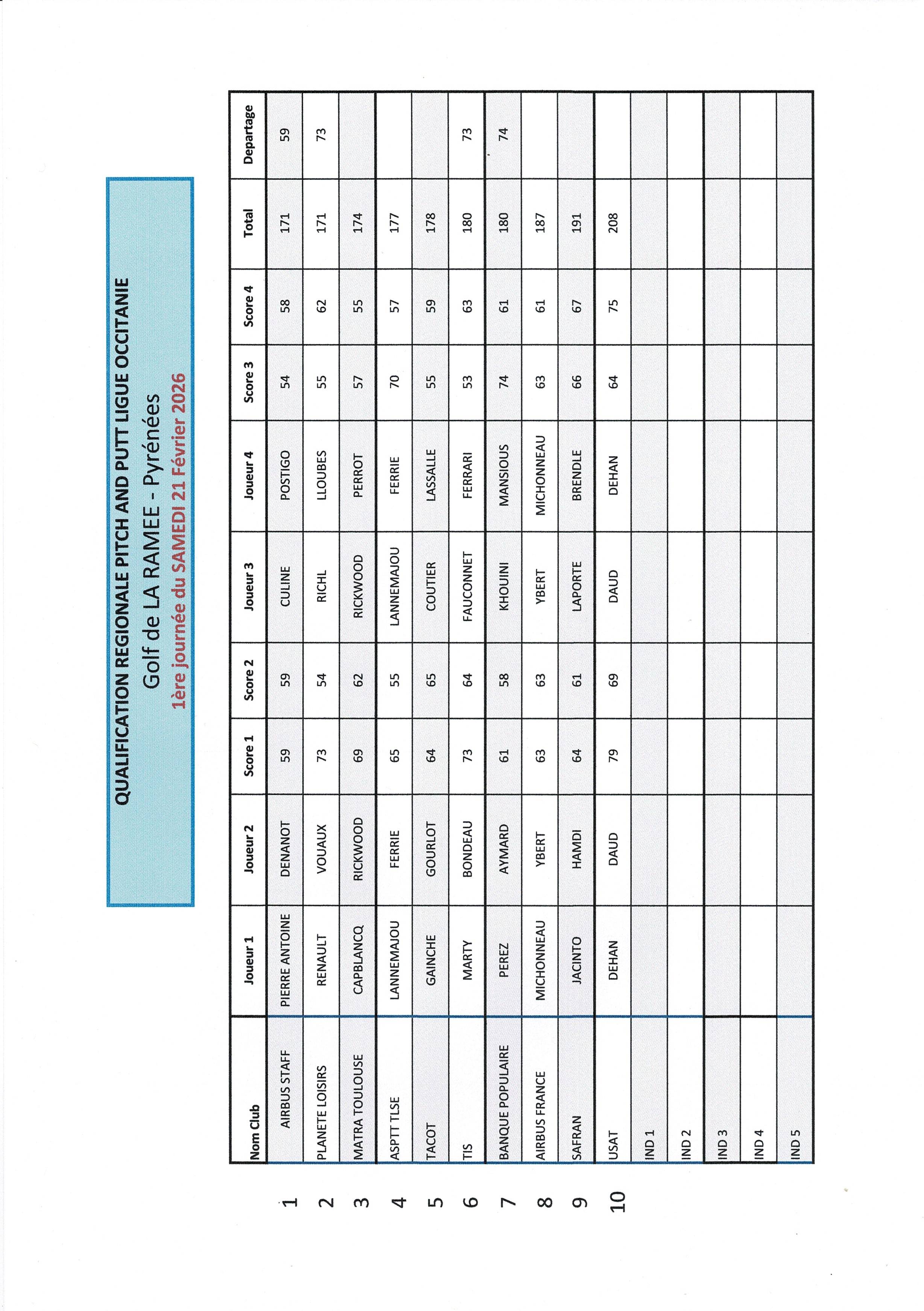 résultats 1er tour de pitch & putt (pyrénées)